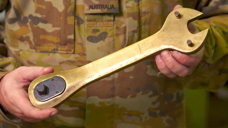 این جغجغهی توپچی از جنس آلومینیوم-برنز، یک ابزار ضروری برای ارتش استرالیاست که توانست آن را مستقیماً در میدان با استفاده از پرینتر سهبعدی Cold Spray شرکت Spee3D چاپ کند. (منبع: Spee3D)