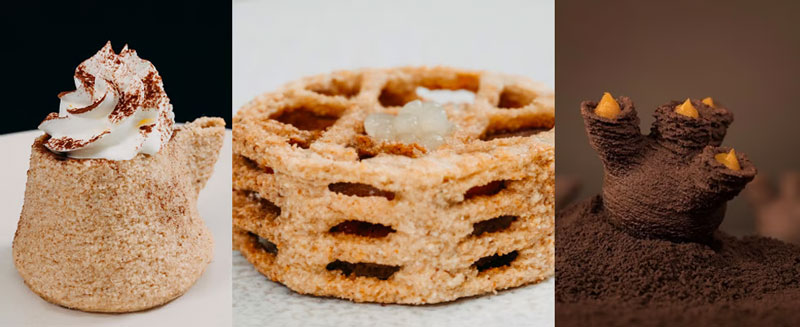 پرینترهای سهبعدی غذا قادرند طرحهای سهبعدی سفارشی را سریعتر و دقیقتر از دست انسان تولید کنند، ضمن اینکه میتوانند خوراکیهای بسیار زیبا و منحصربهفرد بسازند که باعث تمایز یک رستوران از دیگری میشود.