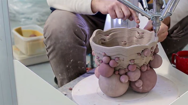 آندرهآ سالواتوری در حال خلق آثار هنری سرامیکی سهبعدی با استفاده از پرینتر دلتا WASP 40100 (منبع: WASP)